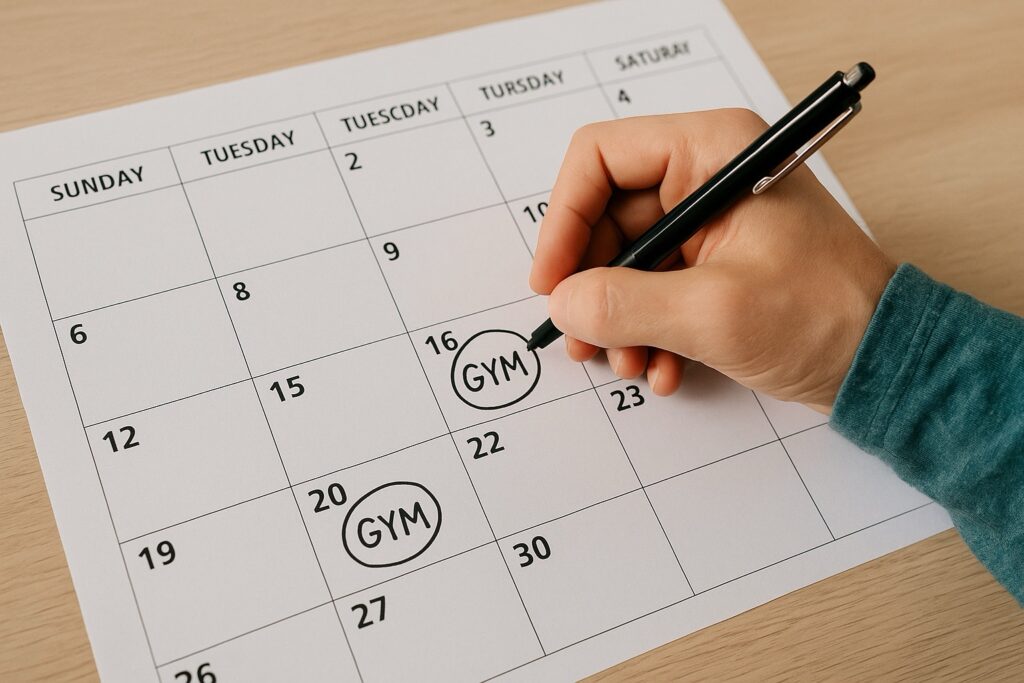 例えば「毎週火曜と金曜の夜はジムに行く」と曜日と時間を固定すると、自然と体が動くようになります。逆に「行ける時に行こう」というスタイルは、一見柔軟で良さそうですが、実際にはモチベーションに左右されやすく「今日は気分じゃない」と先延ばしになりがちです。